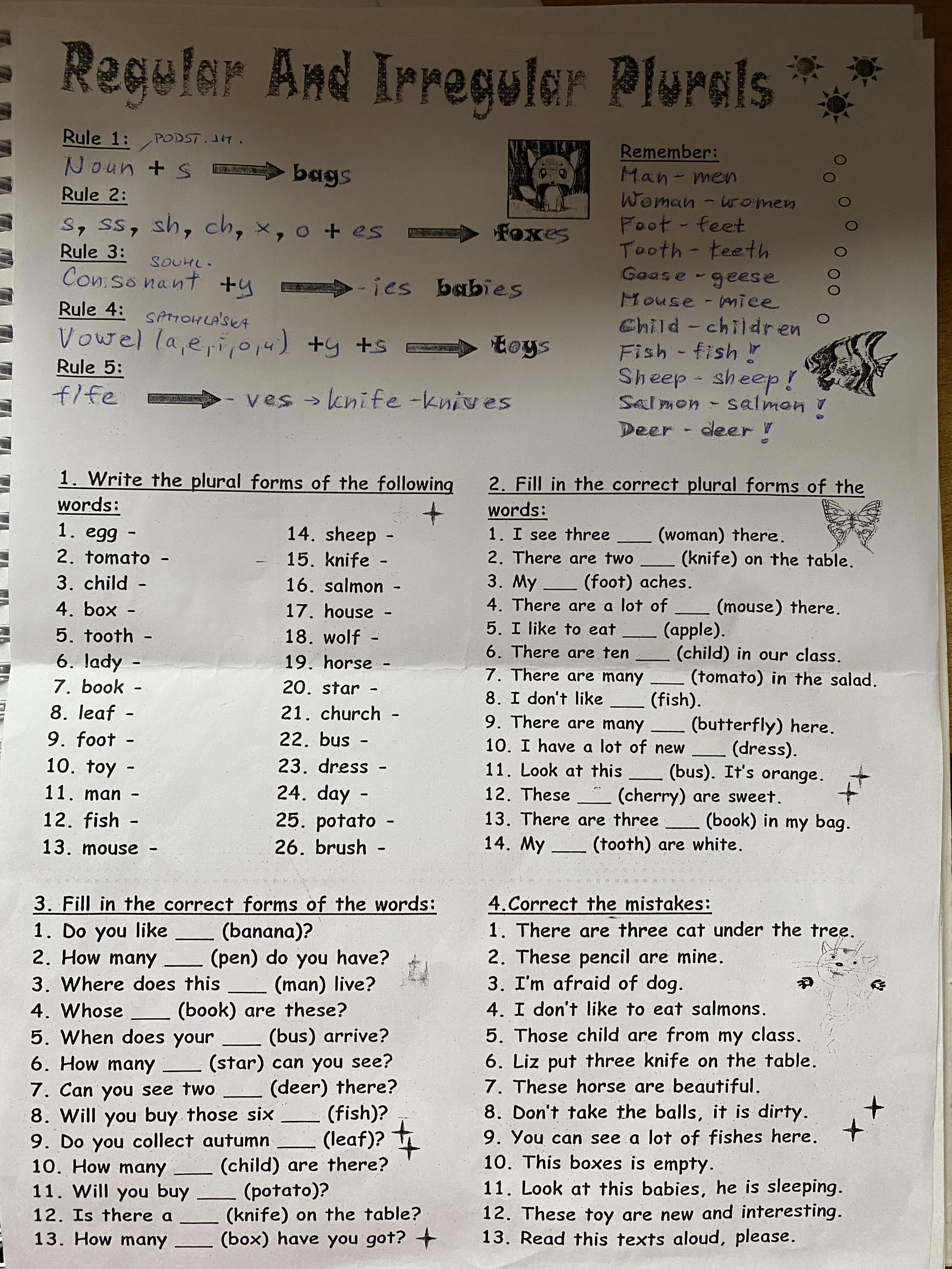 Milí čtvrťáci,tentokrát máte úkol jen jeden, protože máme trochu kratší týden. Vypracujte prac. list na množné číslo, který jste dostali ve škole, pro jistotu ho posílám i v příloze. Úkol udělejte až po naší čtvrteční hodině, úvod si projdeme spolu. Pracovní list nemusíte dělat celý, z každého cvičení stačí 6 slov/vět. Pokud chcete, můžete udělat víc, to už nechám na vás. Hotovou práci vyfoťte a pošlete na můj e-mail do pondělí 23.11.Mějte se h...